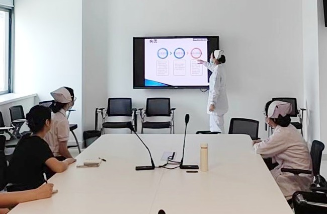 “共享床位”对护理人员的精细观察能力、协调能力及独立解决问题能力、适应能力等都提出了更高的要求。每位护士需要同时与3个或3个以上的专科医生合作,需要具备很强的“跨科护理”能力,这也激发了外科一病区护理团队的学习内生动力。外科一病区地处脊柱和创伤两大骨科学科楼上,依据就近共床的原则,因此,外科一病区共床患者约90%以上来自于脊柱学科患者,为了更好的执行医院方针政策,提升对共床患者的专业护理技术和服务质量,此次培训的内容在外科一病区原有的两个学科基础上,增加了《腰椎间盘突出的围术期护理》的知识,张靓护师从椎间盘的“定义、解剖生理、病因、病理和分型、临床表现、辅助检查、处理原则、护理诊断、护理措施、功能锻炼”十个方面讲解了腰椎间盘突出围术期等相关内容。