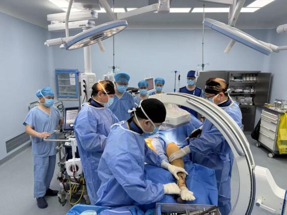 时间就是生命,手术室内,无影灯亮起,骨创伤医院严重多发创伤病区的三组骨科医生同时上阵,在麻醉和ECMO辅助下,不到半小时就对小王的腿部三处骨折进行了初步外固定与开放性伤口处理。手术完成后,当天下午小王返回病房就可以采取俯卧位治疗。