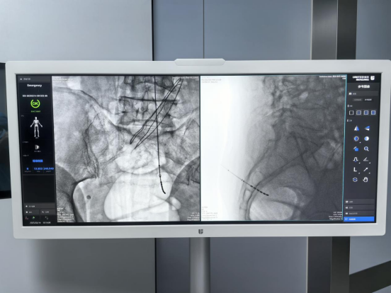 在完善相关术前检查后,孙主任为患者实施国产创新六触点骶神经调控一期电极植入术,电极植入位置精准,术中测试六个触点刺激均有效,手术顺利完成。