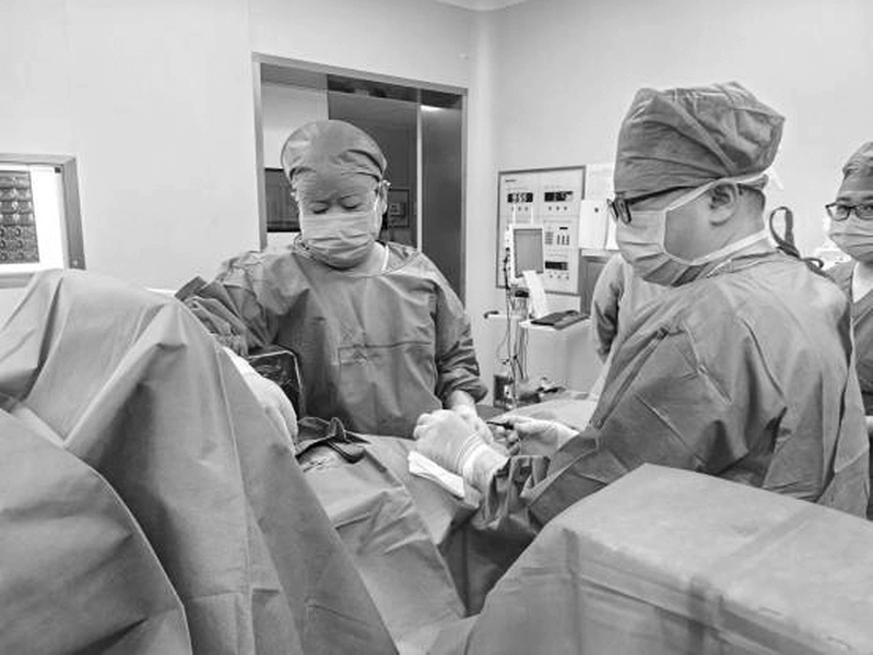 在完善相关术前检查后,孙主任为患者实施国产创新六触点骶神经调控一期电极植入术,电极植入位置精准,术中测试六个触点刺激均有效,手术顺利完成。