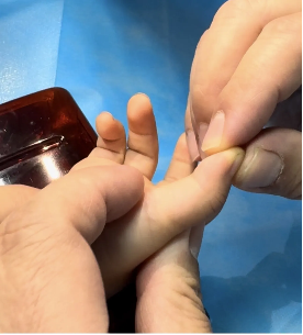 这位患儿自出生起,右手拇指就处于无法伸直的状态。长期的屈曲挛缩不仅影响了其手部的正常活动,也让家长倍感担忧。经过多方打听,了解到西安市红会医院康复医院疼痛病区的主任医师董博在小针刀治疗腱鞘炎方面有着显著的疗效,因此决定带孩子前来就诊。考虑到患儿年龄小、生理特点特殊,董博主任医师在进行了细致的评估之后,果断决定采用小针刀微创疗法。这一技术以其创口微小、操作精准、恢复迅速的特点,有效避免了传统手术中可能出现的创伤大、麻醉风险高等问题。