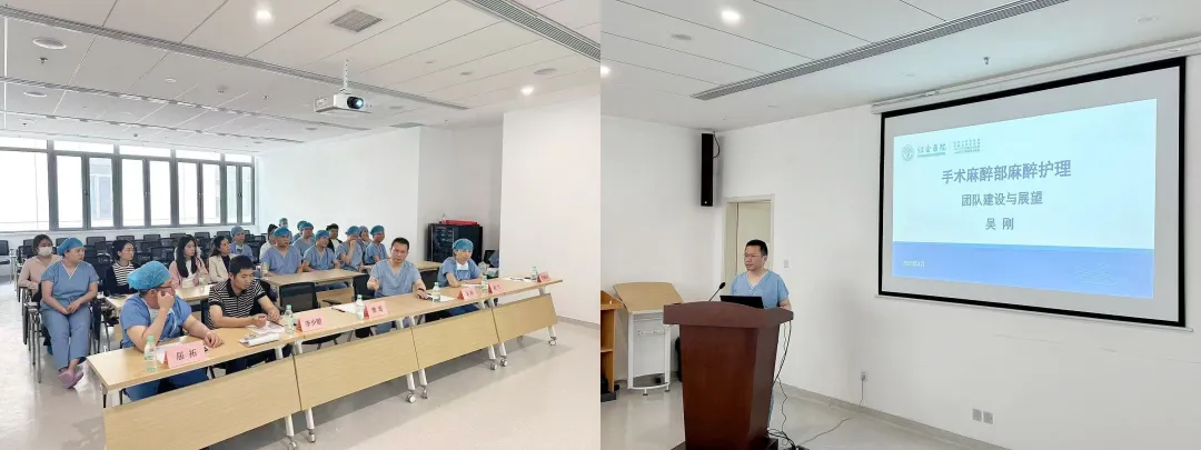北院区手术麻醉部主任吴刚表示,麻醉护理人员作为不可或缺的团队成员和麻醉团队高效运转的基石并强调了麻醉护理人员在麻醉学科发展中的重要作用。随后,吴刚主任以《手术麻醉部麻醉护理团队建设与展望》为题进行主旨授课,详细介绍了麻醉护理学的发展历史,并强调了麻醉科医护人员应共同发展、相互促进。