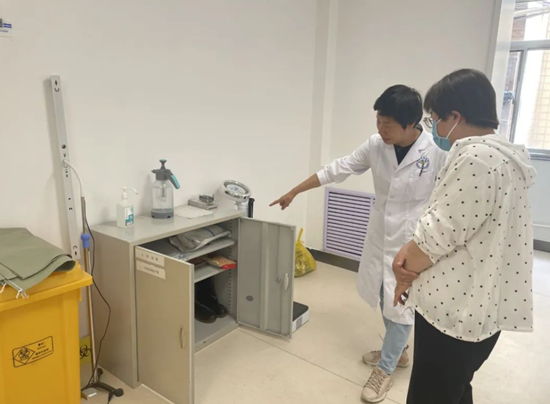 检查组先后走访了门诊部、检验科、药房、抢救室、医废处置室和留观室等重点区域,对卫生所的硬件设施和软件管理进行了专业检查,方科长在检查中对预检分诊设施配置及流程管理方面提出了具体的优化建议。
