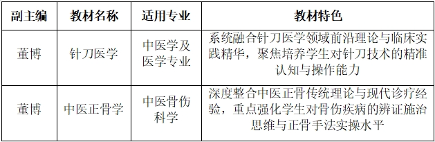 教材建设作为学科发展的“根基工程”,直接关系人才培养质量。董博教授作为陕西中医药大学硕士研究生导师、教授,长安弓弦针刀流派负责人,陕西省中医药管理局及陕西省卫健委针刀医学创新团队负责人,牵头参编的两部教材,将以学科最新研究成果为核心,紧密贴近临床需求,助力夯实学生“理论+实践”双基能力。