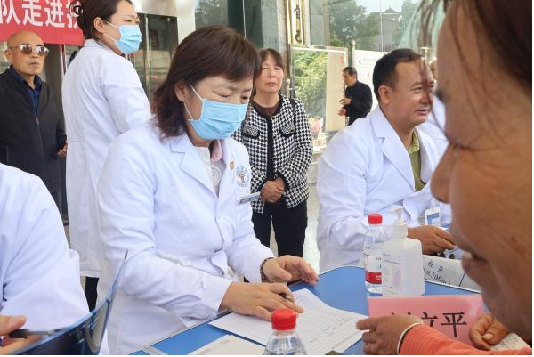 9月8日,在副院长刘立平的带领下,医疗队抵达首站扶风县人民医院,并在医院门诊楼前举行大型义诊活动。活动现场,前来就诊的群众络绎不绝。专家们认真倾听患者病情陈述,详细询问病史,进行规范的体格检查,针对常见病、多发病及慢性病提供科学诊疗建议和用药指导。对于病情复杂或需进一步诊治的患者,医疗队现场制定个性化诊疗方案,并提出明确的随访和转诊建议,确保患者得到连续、有效的医疗服务。