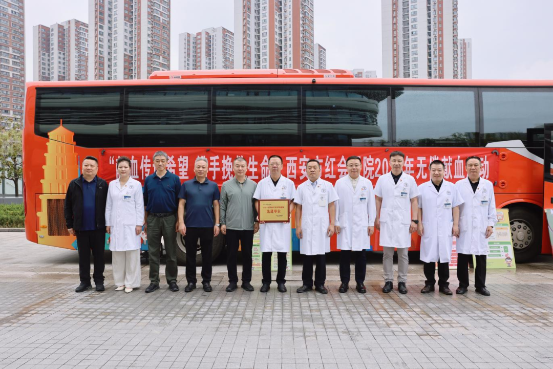 9月10日,无偿献血先进集体授牌仪式在北院区采血点前隆重举行。西安市中心血站班子成员、西安市红会医院党委领导及职能科室负责人共同出席。西安市中心血站党委书记杨延将“无偿献血先进集体”牌匾郑重授予西安市红会医院。此次授牌充分肯定了西安市红会医院在2024年为保障全市临床用血所作出的突出贡献。院党委书记柳明书记表示:“这份荣誉是对红会人爱心奉献和公益担当的高度认可,更激励我们继续做无偿献血的倡导者和践行者!”