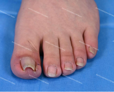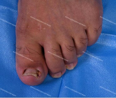 如何操作:医生行趾根部神经阻滞麻醉后,切除甲皱襞条带,对合切口。