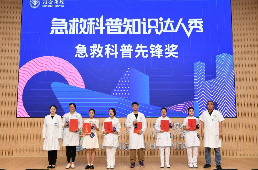 经过激烈角逐,12支队伍荣获“急救科普先锋”称号,西安市红会医院科教部部长黄大耿、医务部临时负责人朱雷、工会副主任李妲、宣传科副科长辛源为获奖队伍颁奖,剩余10支队伍将在决赛中角逐出一、二、三等奖。