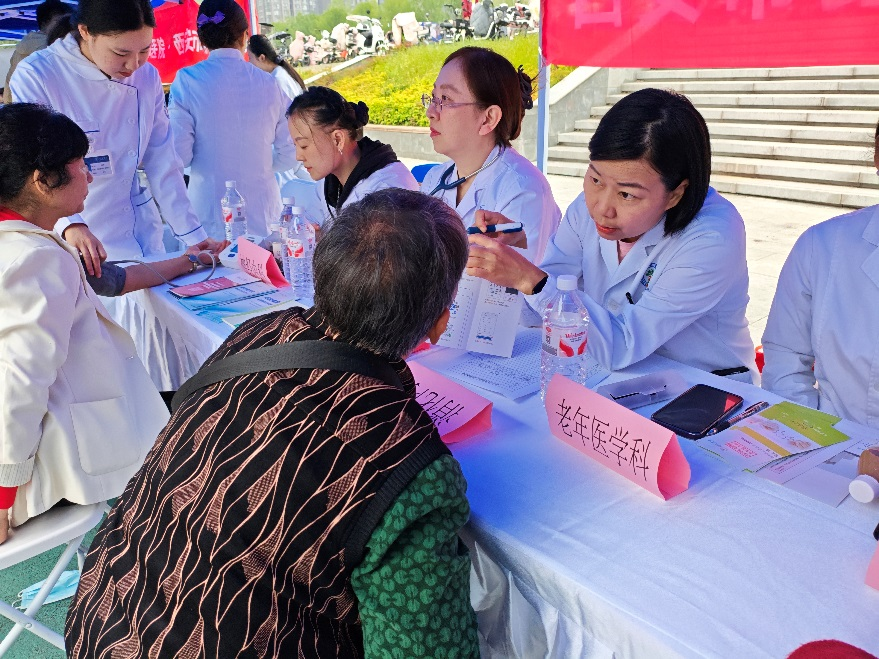 义诊现场,专家团队为数十名前来咨询的市民提供了细致的初步健康评估、科学用药指导及个性化的健康管理建议。针对老年人常见的慢性疾病、关节退行性病变、心脑血管病、呼吸系统疾病、神经系统问题及消化系统疾病等热点健康问题,专家们耐心答疑解惑,现场示范康复锻炼方法,并发放健康科普宣传手册,帮助群众提升疾病预防和自我保健意识。护理团队同步开展血压测量、健康生活方式宣教等服务,获得社区居民的一致好评。