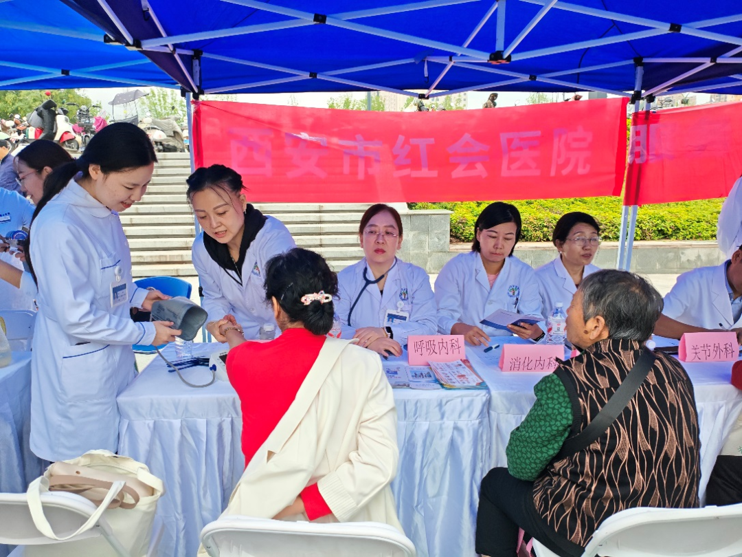 此次义诊活动由西安市红会医院副院长刘立平带队,精心选派来自各临床科室的骨干力量,老年医学科主任王莉萍、呼吸内科副主任医师牛敏、神经内科副主任医师马洁、关节病院综合病区副主任医师井文森、消化内科主治医师王莉及南院区心血管内科护师白妍组成的义诊团队,为社区居民提供系统化、精准化的健康咨询与诊疗服务。