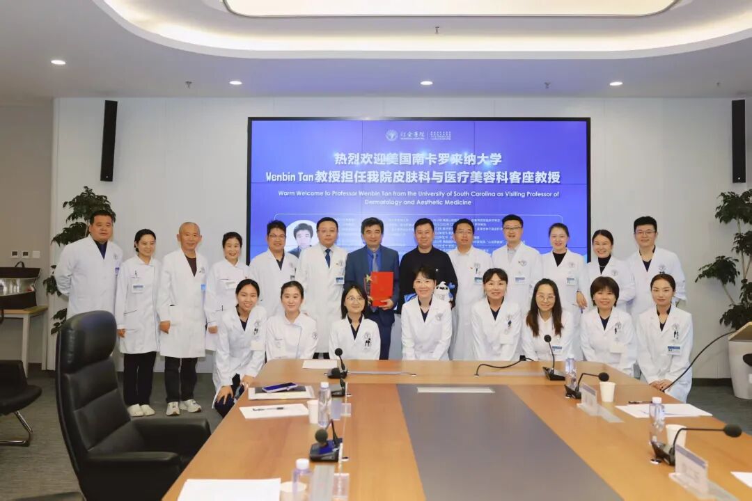 闫亮副院长代表西安市红会医院对谭文斌教授的远道而来表示热烈欢迎和衷心感谢,他在致辞中回顾了皮肤科与医疗美容科在过去一年中快速发展的历程,对科室在高琳主任带领下取得的优异成绩给予了高度肯定。闫亮副院长指出,聘请谭文斌教授这样的国际顶尖学者作为客座教授,是医院“人才强院、科技兴院”战略的具体实践。他相信,谭教授的加入必将为科室乃至医院的科研创新、临床技术和国际交流注入新的强大动能。