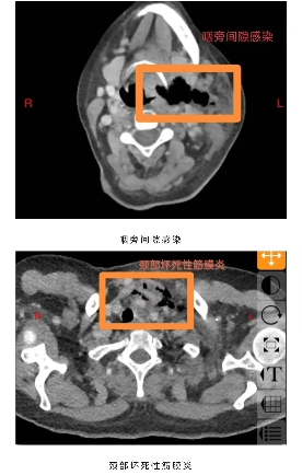 阳光讯(记者郑亚雷 通讯员 陈萌)60岁的庄女士未曾想到,一场看似寻常的牙痛,竟会迅速发展为危及生命的重症。庄女士糖尿病多年未经规范治疗,口腔卫生欠佳,口内牙齿时不时疼痛、松动、脱落,患者总认为牙疼是小毛病,吃点甲硝唑就好了,从未重视。5 天前,左下后牙疼痛后患者依旧未经重视,很快就出现咽部、颈部疼痛伴吞咽困难,在当地医院接受抗感染治疗,病情却未见好转,还出现难以忍受的胸部疼痛,叠加吞咽、呼吸困难等症状,被救护车紧急送往西安市红会医院耳鼻咽喉头颈整形修复科。经诊断,庄女士为 “颞下、咽旁、翼下颌、颌下间隙感染,颈部坏死性筋膜炎、下行性坏死性纵膈炎”,病情及其危重,需要头颈外科、胸外科、内分泌科等多学科联合救治,此类疾病非常凶险,死亡率较高,为患者办理住院后转入急诊重症监护室(EICU),一场与死神的赛跑就此拉开序幕。