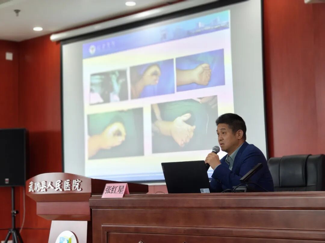 西安市红会医院副院长刘立平介绍了医院学科建设成果和陕西省骨科医疗集团的发展历程,并表示,此次合作“不局限于骨科”,红会医院将依托其“大综合、强骨科”的学科优势,在多领域开展系统化帮扶,通过技术指导、人才培养、远程会诊、双向转诊等方式,推动武功县人民医院综合服务能力整体提升。