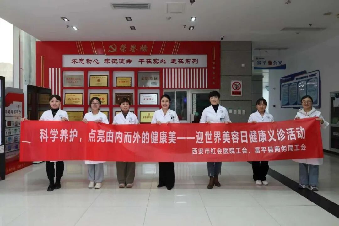 在“世界美容日”来临之际,为向市民普及科学美容与健康管理知识,西安市红会医院在工会副主席李妲的组织下,携手西安市富平县商务局工会,共同举办了主题为“科学养护,点亮由内而外健康美”的联合义诊活动,将专业健康服务与人文关怀精准送到广大职工身边。