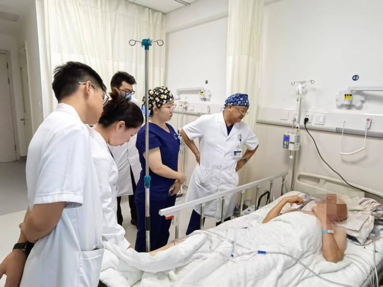 患者术后经过 39 天的抗感染、营养支持、伤口护理及功能锻炼,恢复情况良好:颈部术区无肿胀疼痛,移植的复合组织瓣血运正常,完全成活;张口咬合功能逐步恢复,右下肢植皮区域存活良好,吞咽和肢体活动功能稳步改善。最终患者顺利出院,后续将继续接受抗肿瘤治疗及定期复查。