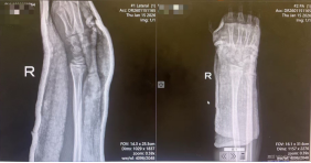 患儿入院时携带的X线片显示,右桡骨远端骨皮质连续性中断,骨折端成角畸形,并伴有骨骺滑脱。此类涉及骨骺的儿童骨折对复位精度要求极高,既要恢复骨骼的正常解剖对位,以保障肢体功能及骨骼正常发育,又需最大限度避免对骨骺造成二次损伤,以免影响未来的骨骼生长,这给治疗带来了不小的挑战。