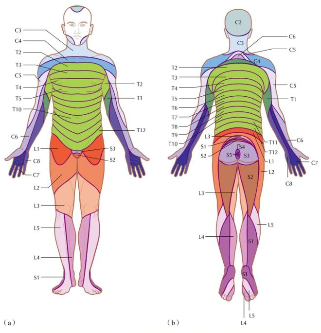 皮节体感诱发电位( DSEP ):是我院为了评估神经根功能,对传统 SEP 的进行了优化。其原理是,根据皮节分布图(皮节即单一神经后根支配的皮肤感觉区域),刺激相应神经根对应的皮节,在皮层记录到的诱发电位信号。
