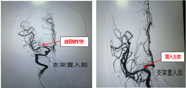 为确保手术万无一失,胡晓辉主任、陈刚及杨龙医生组成介入团队为刘女士制定了个性化手术方案,术前反复推演手术路径,预判并制定应对各种突发情况的预案。手术当天,在麻醉科、手术室的全力配合下,神经内科南院区介入团队通过股动脉穿刺建立微小通道,将纤细的导管、导丝精准送达大脑中动脉狭窄部位,在DSA影像引导下,顺利将支架精准释放、定位。整个手术全程历时仅2小时,全程微创、出血少,术后刘女士即刻清醒,术后第一天刘女士状态良好,复查头部CT未见异常。同时,由李培培护士长带领护理团队进行精心护理,严密观察术后的身体情况,给予全方位的照料,未出现任何并发症,经过一周的康复治疗,各项指标均恢复正常,顺利康复出院,对治疗效果非常满意。