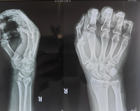 在充分告知并获得患者及家属知情同意后,杜龙龙主治医师在董博主任和周健副主任医师现场指导下,为何先生实施手法复位。凭借扎实的解剖知识与丰富的临床经验,团队精准把控复位力度与方向,通过轻柔而稳健的操作,逐步纠正骨折端的移位与畸形。整个过程流畅高效、一气呵成。复位完成后,复查X线片显示,骨折对位对线良好,关节面恢复平整,达到理想复位标准。何先生当即感到腕部疼痛显著缓解,扭曲的手腕形态恢复正常,对治疗效果连连称赞。