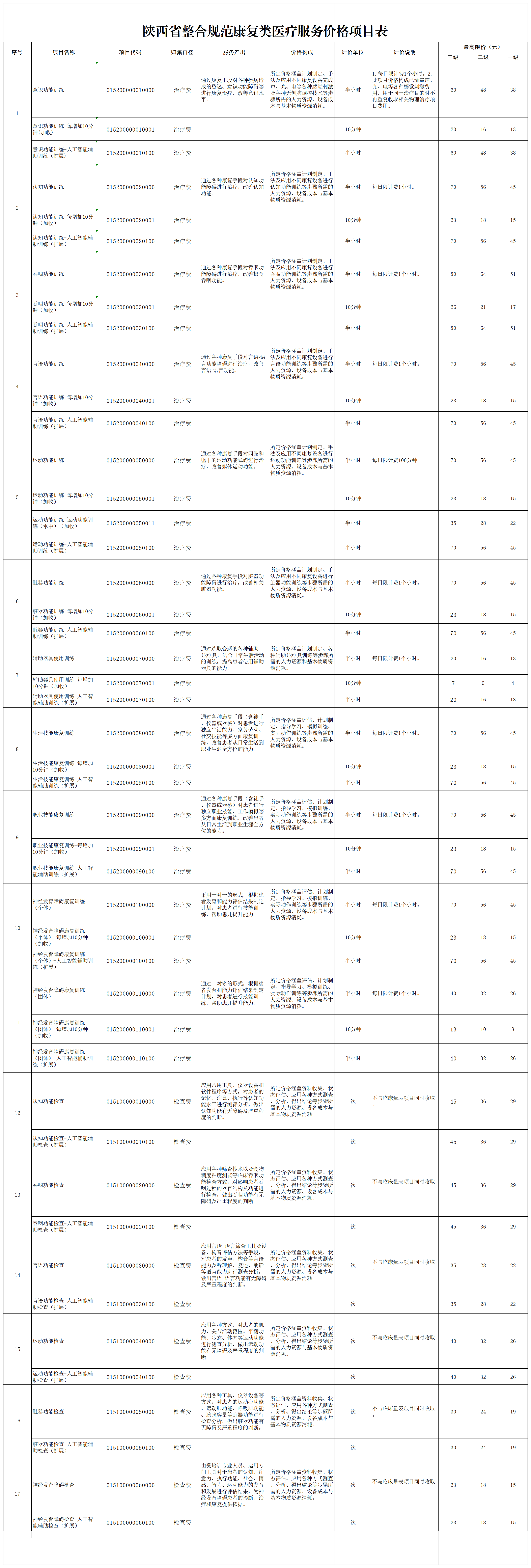 陕医保函【2025】230号文“陕西省医疗保障局关于整合规范放射治疗等八类医疗服务价格项目的通知”康复、妇科、泌尿系统、心血管系统价格项目自2026年3月15日起执行