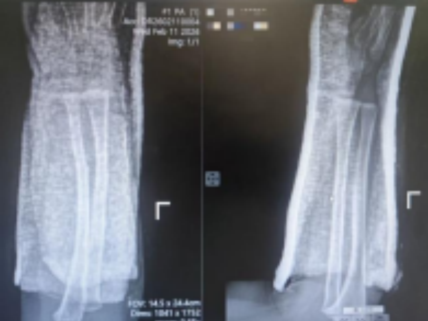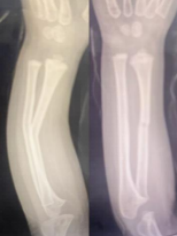 3岁的小阳阳(化名)在玩耍时不慎摔倒,当即哭闹不止,左前臂迅速肿胀变形,家长紧急将其送往西安市红会医院。影像检查提示:尺桡骨双骨折,骨折端移位明显,伴成角畸形——这类损伤在常规诊疗路径中,多建议手术切开复位内固定。