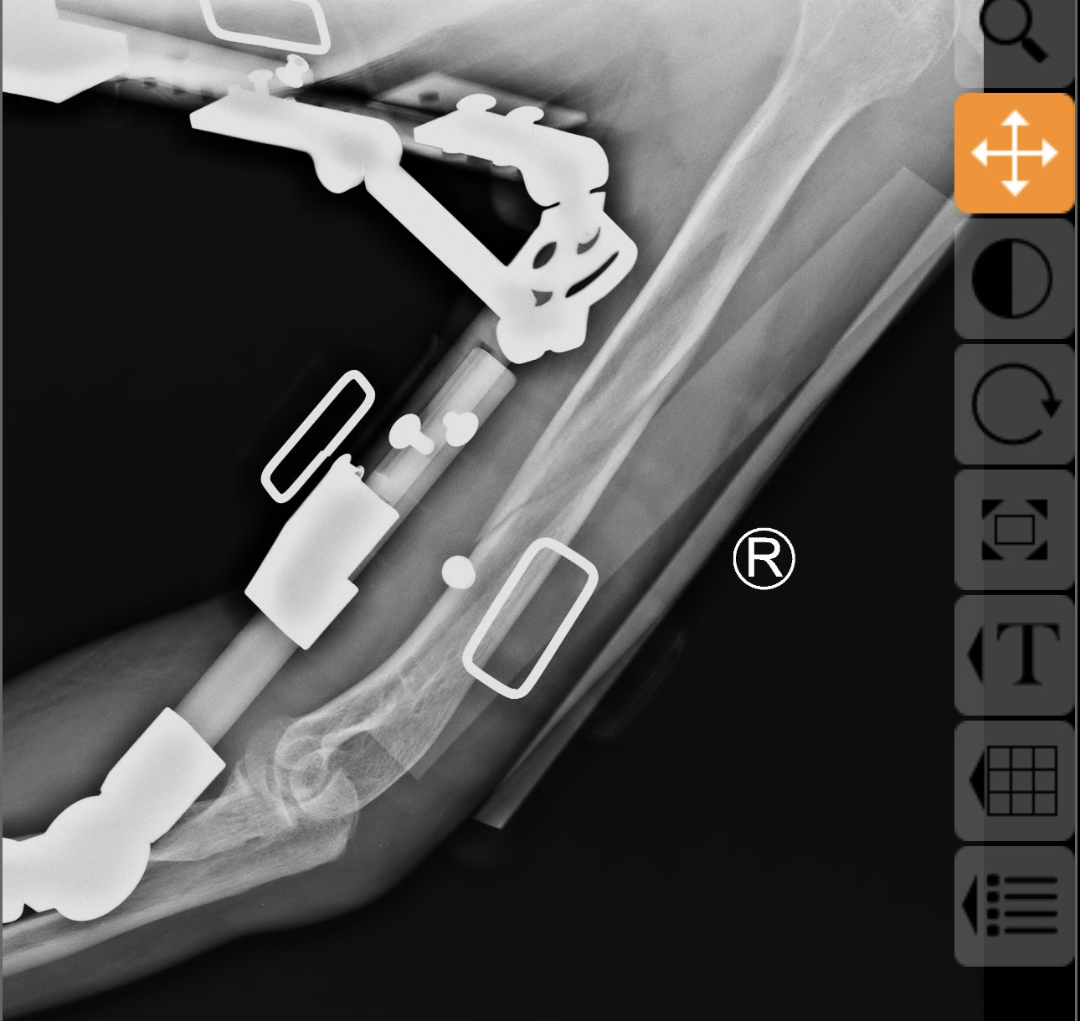 在董博主任医师和周健副主任医师的精准操作下,通过专业的手法复位技术,成功将移位的骨折端恢复至正常解剖位置,随后为患者佩戴外固定支架进行稳定固定。复位后的X线片显示,骨折对位对线良好,患肢末梢血运正常,治疗效果显著。