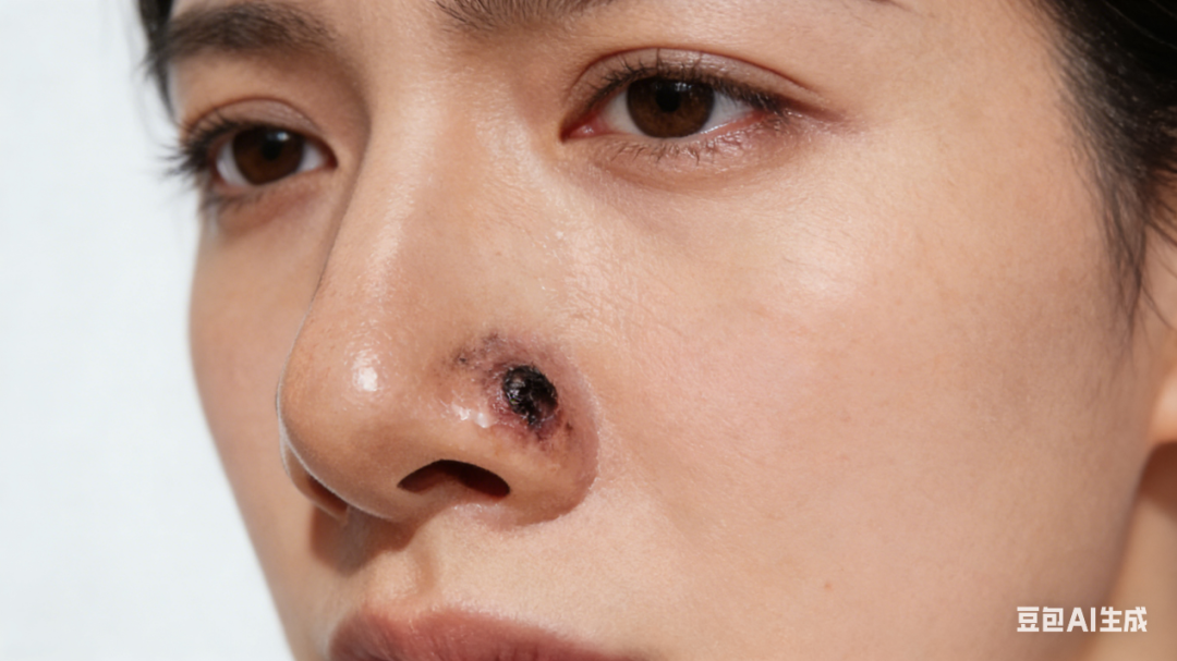 半年前, 49 岁的李女士发现鼻翼旁长了一颗直径约 5 毫米的色素痣,觉得影响美观,便在小区附近的美容店做了「药水点痣」。当时店员承诺「一次根除,不留疤痕」,可伤口愈合后周围还是有散在黑点,李女士又去找店家点了第二次,这次很干净,李女士当时觉得很满意。