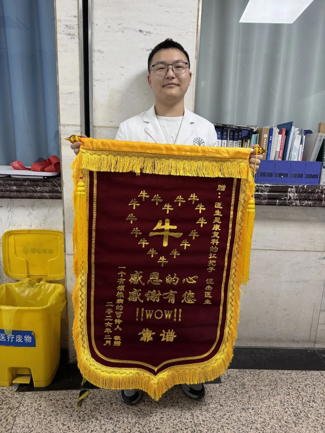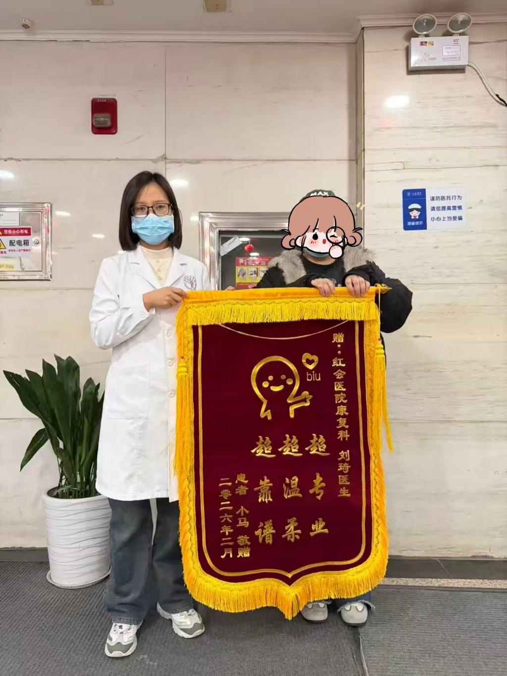 经过四次系统治疗,马女士的头晕、恶心、手麻及颈僵等症状基本消失,顺利回归正常工作与生活。回忆发病时的痛苦经历,她满怀感激地说:“你们真的不知道我有多感激,那两天我难受得几乎撑不下去了!”为表达谢意,马女士特意送来一面锦旗,并用“超专业、超温柔、超靠谱”高度赞扬了刘琦、汪杰两位治疗师精湛的医术与暖心的服务。