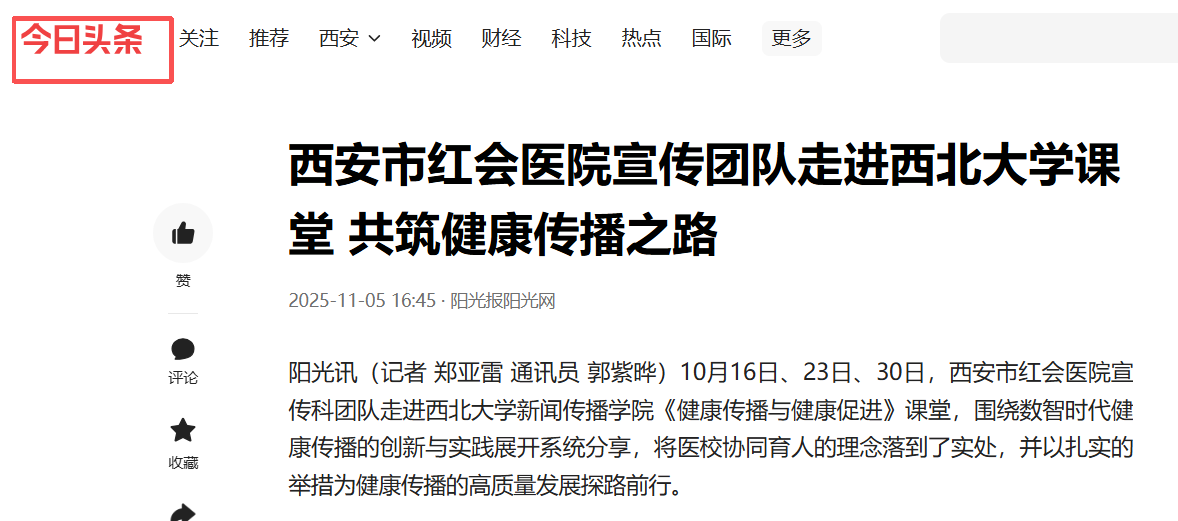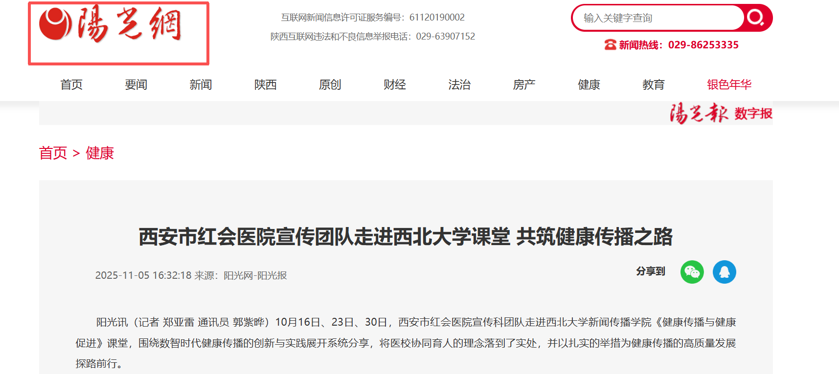 阳光讯(记者 郑亚雷 通讯员 郭紫晔)10月16日、23日、30日,西安市红会医院宣传科团队走进西北大学新闻传播学院《健康传播与健康促进》课堂,围绕数智时代健康传播的创新与实践展开系统分享,将医校协同育人的理念落到了实处,并以扎实的举措为健康传播的高质量发展探路前行。…