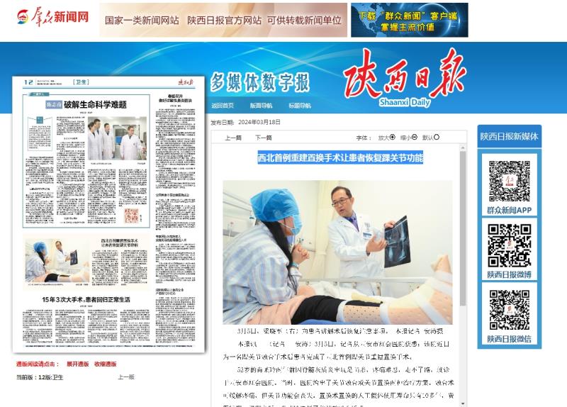 本报讯 (记者 安涛)3月5日,记者从西安市红会医院获悉:该院近日为一名踝关节融合手术后患者完成了西北首例踝关节重建置换手术。52岁的肖某玲两年前因脊髓灰质炎出现足畸形,疼痛难忍,走不了路,就诊于西安市红会医院。当时,医院给出了关节融合或关节置换两种治疗方案。融…