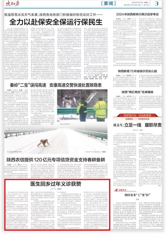 本报记者 张家祯“这才是把论文写在祖国的大地上!”“来自人民,服务于人民。”“这才是真正的衣锦还乡!”……近日,一段西安医生春节期间帮乡亲们免费看病的视频在全网引发广泛关注,收获一片好评。2月23日,记者采访到这位已经复工的医生杨俊松。杨俊松是西安市红会医院脊…