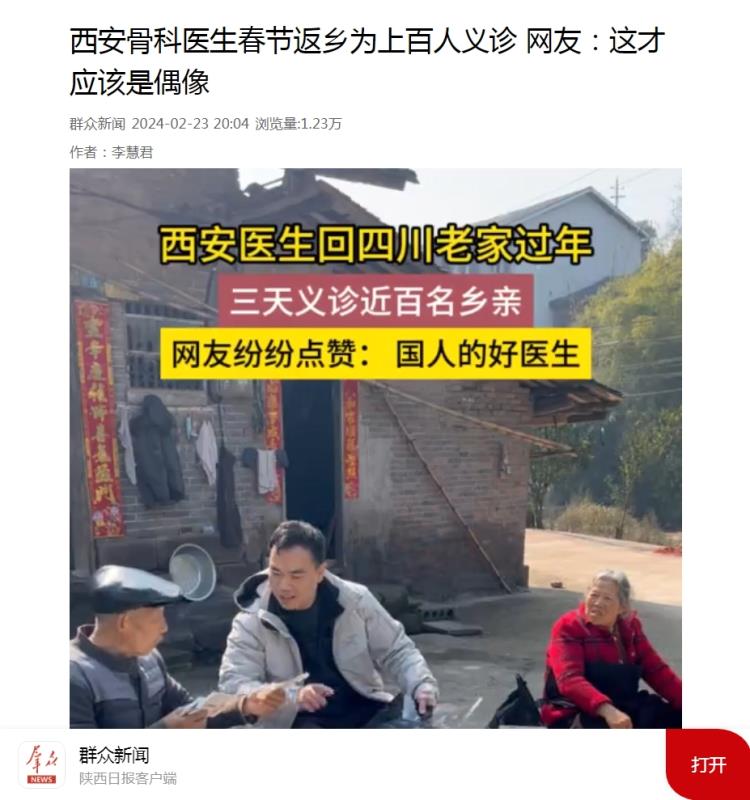 “医者仁心,中国好医生!”“这是一家人的荣耀。”“父母的骄傲。”“村里的好儿子。”“这才应该是偶像。”这个春节,西安医生杨俊松在社交平台上火了,他为四川乡亲免费看病的善举,温暖了众多网友的心,大家纷纷为他的这一举动点赞与叫好。2月23日,当记者联系到杨俊松时,…