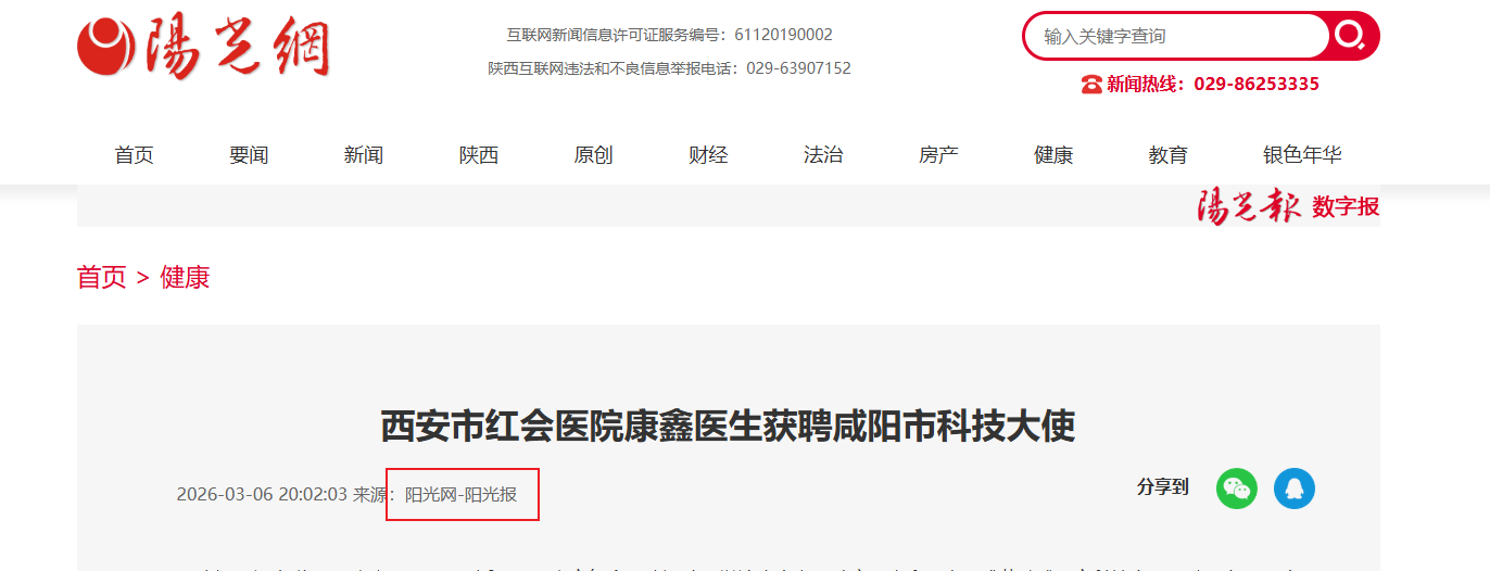 阳光讯(记者 郑亚雷 通讯员 王月)近日,西安市红会医院运动医学诊疗中心下肢病区康鑫医生正式获聘咸阳市科技大使,聘期自2025年7月31日至2026年7月30日,这一任命不仅是对康鑫医生个人专业能力的高度认可,也彰显了西安市红会医院在医疗科技领域的影响力与贡献。 专业深耕 铸…
