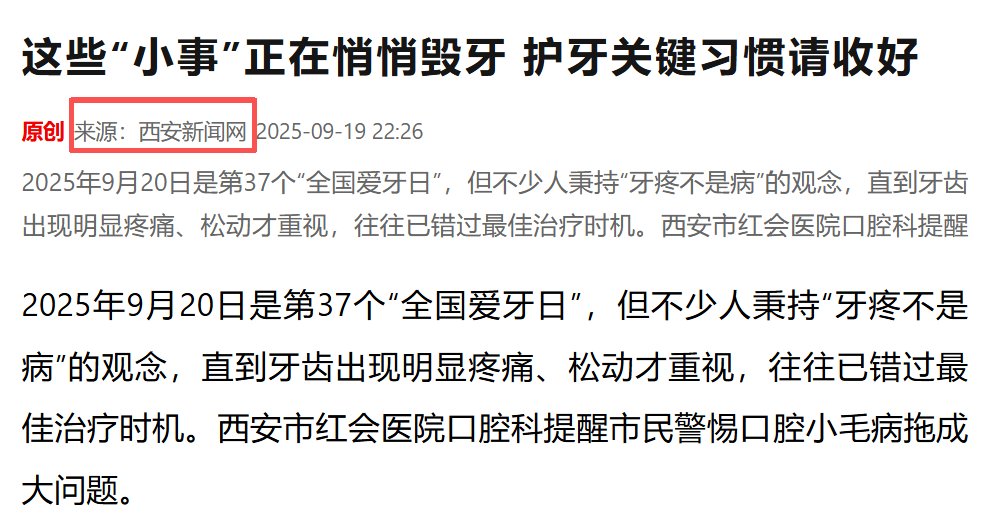 2025年9月20日是第37个“全国爱牙日”,但不少人秉持“牙疼不是病”的观念,直到牙齿出现明显疼痛、松动才重视,往往已错过最佳治疗时机。西安市红会医院口腔科提醒市民警惕口腔小毛病拖成大问题。20岁大学生小林一年前发现后牙有小黑点,因无疼痛感未在意,三个月后进食冷热食…