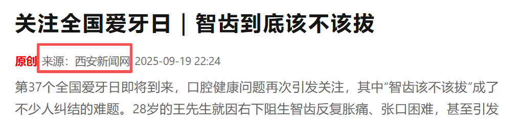 第37个全国爱牙日即将到来,口腔健康问题再次引发关注,其中“智齿该不该拔”成了不少人纠结的难题。28岁的王先生就因右下阻生智齿反复胀痛、张口困难,甚至引发面部肿胀低热,最终在西安市红会医院口腔科拔除智齿后恢复正常。西安市红会医院口腔科专家明确,智齿拔留没有统一…