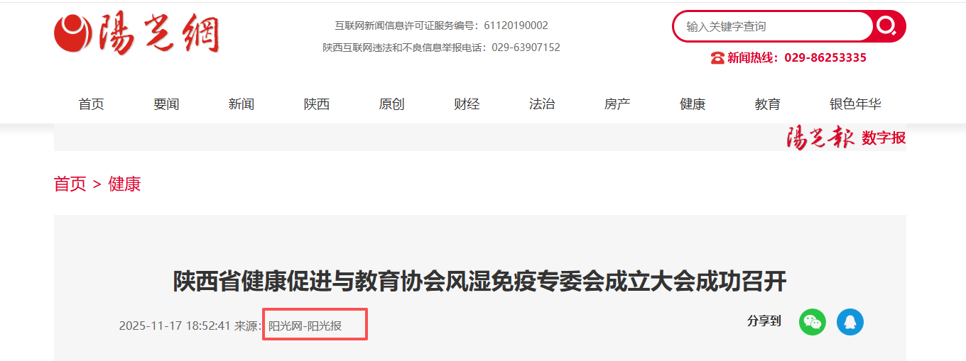阳光讯(记者 郑亚雷 通讯员 杨宽)11月14日,由陕西省健康促进与教育协会主办、西安市红会医院承办的“陕西省健康促进与教育协会风湿免疫专业委员会成立大会暨风湿病研究热点及围手术期管理陕西省继续教育专题讲座”在西安市红会医院北院区学术报告厅成功举办。陕西省健康促进…
