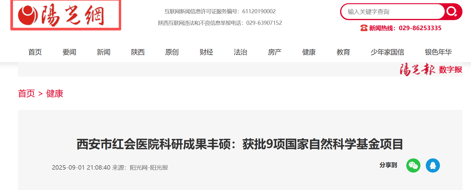 阳光讯(记者 郑亚雷)近日,国家自然科学基金委员会正式公布2025年度国家自然科学基金项目评审结果,西安市红会医院成绩斐然,共获批9项国家自然科学基金项目,其中面上项目2项、青年科学基金项目(C类)7项。此次立项总数刷新院史新高,在陕西省地方医疗系统中位列第一。多科…