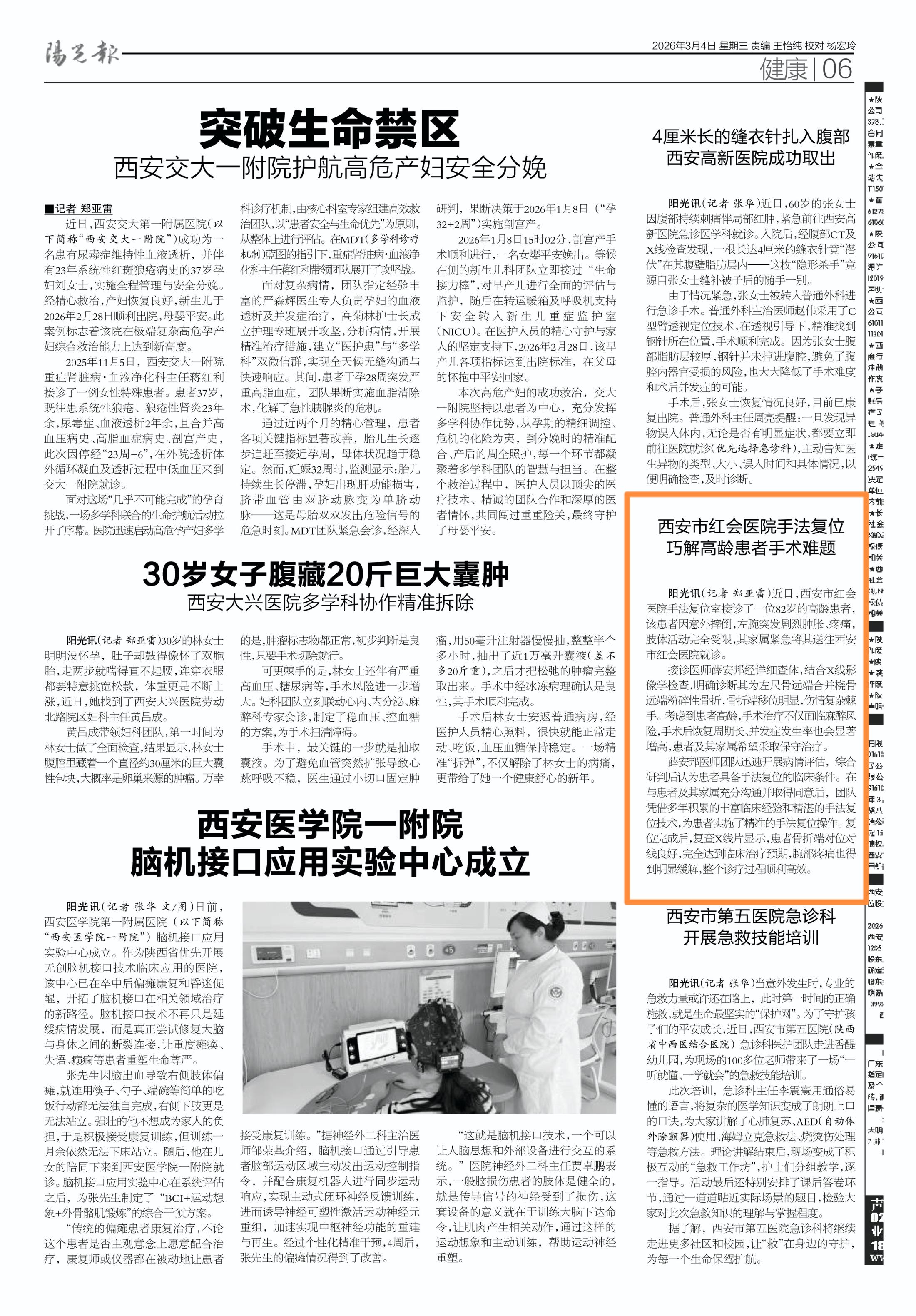 阳光讯(记者 郑亚雷)近日,西安市红会医院手法复位室接诊了一位82岁的高龄患者杨奶奶--因意外摔倒,左腕突发剧烈肿胀、疼痛,肢体活动完全受限,家属紧急将其送往西安市红会医院就诊。接诊医师薛安邦第一时间为杨奶奶开展详细查体,结合X线影像学检查,明确诊断其为左尺骨远…