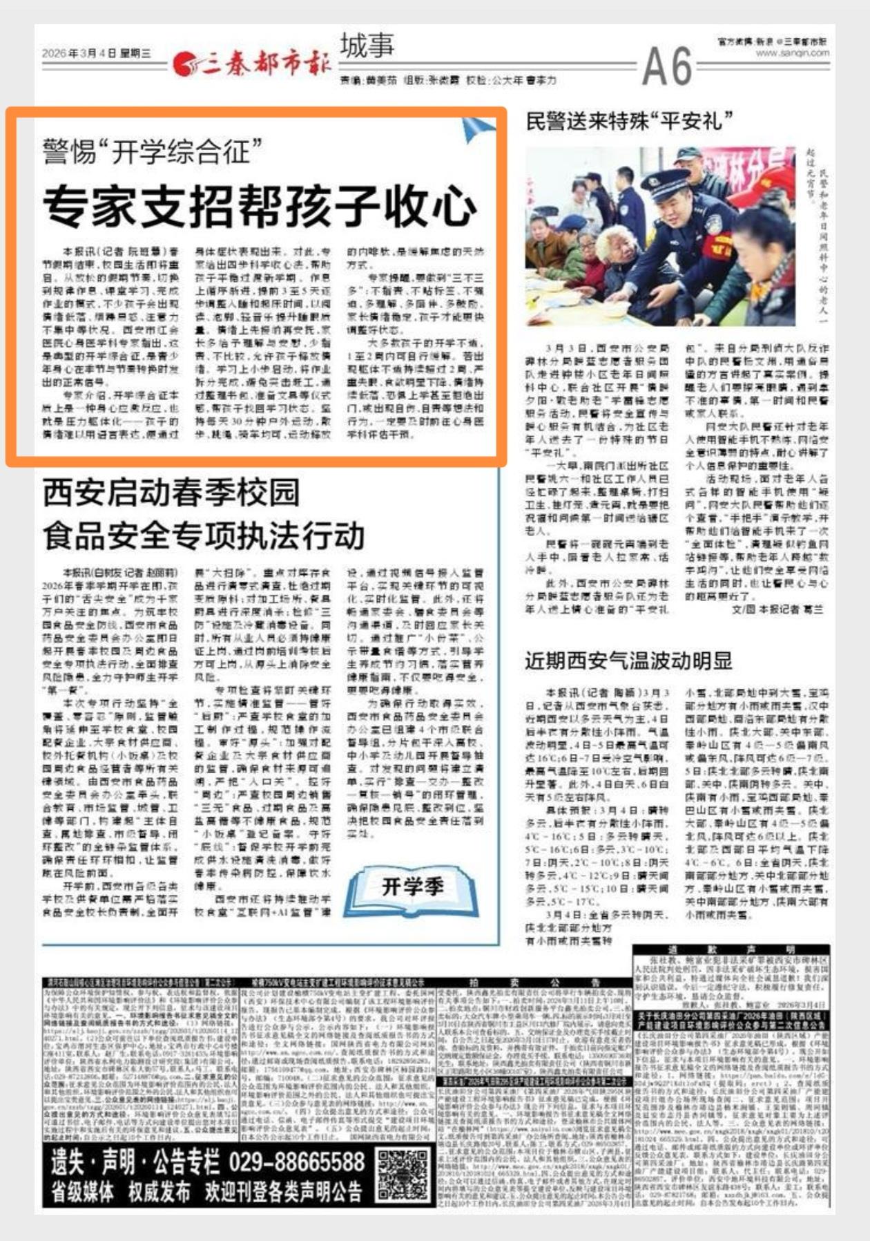 本报讯(记者阮班慧)春节假期结束,校园生活即将重启。从放松的假期节奏,切换到规律作息、课堂学习、完成作业的模式,少孩子会出现情绪低落、烦躁易怒、注意力不集中等状况。西安市红会医院心身医学科专家指出,这是典型的开学综合征,是青少年身心在季节与节奏转换时发出的正…