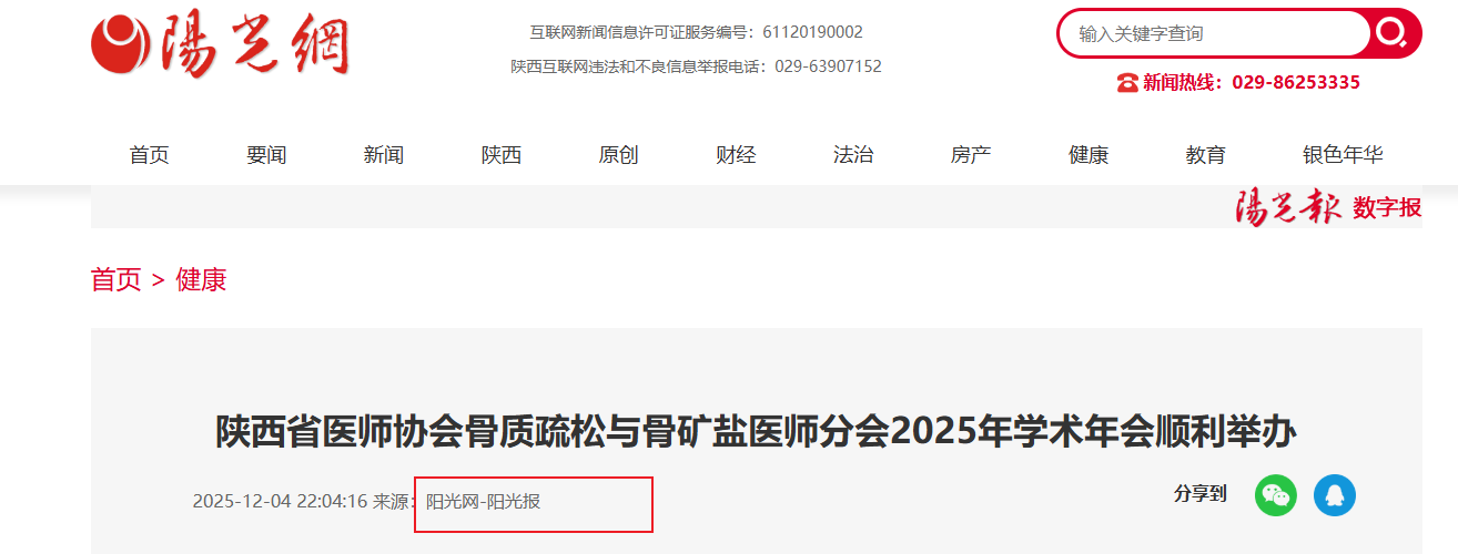 阳光讯(记者 郑亚雷 通讯员 师杰)为推动陕西省骨质疏松防治事业高质量发展,搭建跨领域学术交流平台,由陕西省医师协会主办,陕西省医师协会骨质疏松与骨矿盐医师分会、西安市红会医院联合承办的陕西省医师协会骨质疏松与骨矿盐医师分会2025年学术年会顺利举办。29日上午,开…