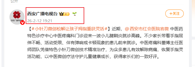 【#小针刀微创松解让孩子拇指重获灵活#】近期,@西安市红会医院官微 中医药特色诊疗中心中医疼痛科门诊迎来一波小儿腱鞘炎就诊高峰。不少家长带着手指屈伸不畅、活动受限、伴有弹响或卡顿现象的患儿前来就诊。中医疼痛科董博主任医师团队凭借特色小针刀微创技术精准治疗,为众…