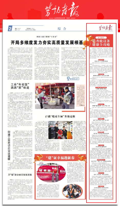新春佳节之际,阖家团圆,走亲访友、出游踏春……年味正浓,但健康不能“放假”!每逢春节,肠胃不适、皮肤爆痘、声带疲劳、腰背酸痛、出行劳损、烟花爆竹意外等问题高发。为此,特别采访西安市红会医院多科室专家为大家提供新春健康全攻略,全力守护您全家老少的吃、住、行、…