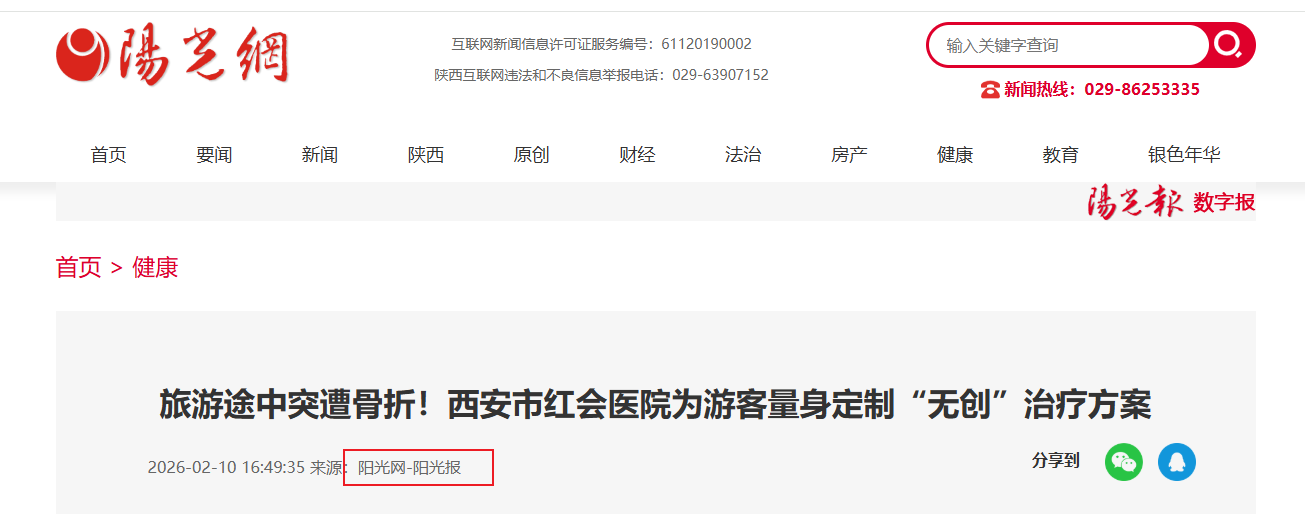 阳光讯(记者 郑亚雷 通讯员 曾雪琴)2月7日,61岁的广东游客何先生在翠华山景区游览时,因地面湿滑意外跌倒,右手撑地瞬间即感剧烈疼痛,手腕迅速肿胀变形,连握持手机都难以完成。何先生同行家人立即拨打急救电话,在景区工作人员协助下,何先生于伤后两小时内被紧急送至西安…