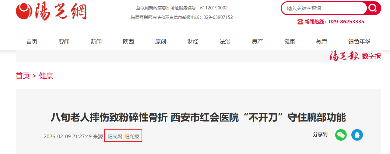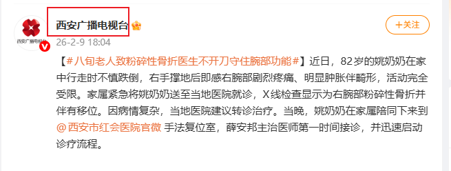 2 月 7 日,61 岁的广东游客何先生在翠华山景区游览时,因地面湿滑意外跌倒,右手撑地瞬间即感剧烈疼痛,手腕迅速肿胀变形,连握持手机都难以完成。何先生同行家人立即拨打急救电话,在景区工作人员协助下,何先生于伤后两小时内被紧急送至西安市红会医院手法复位室。接诊的主…