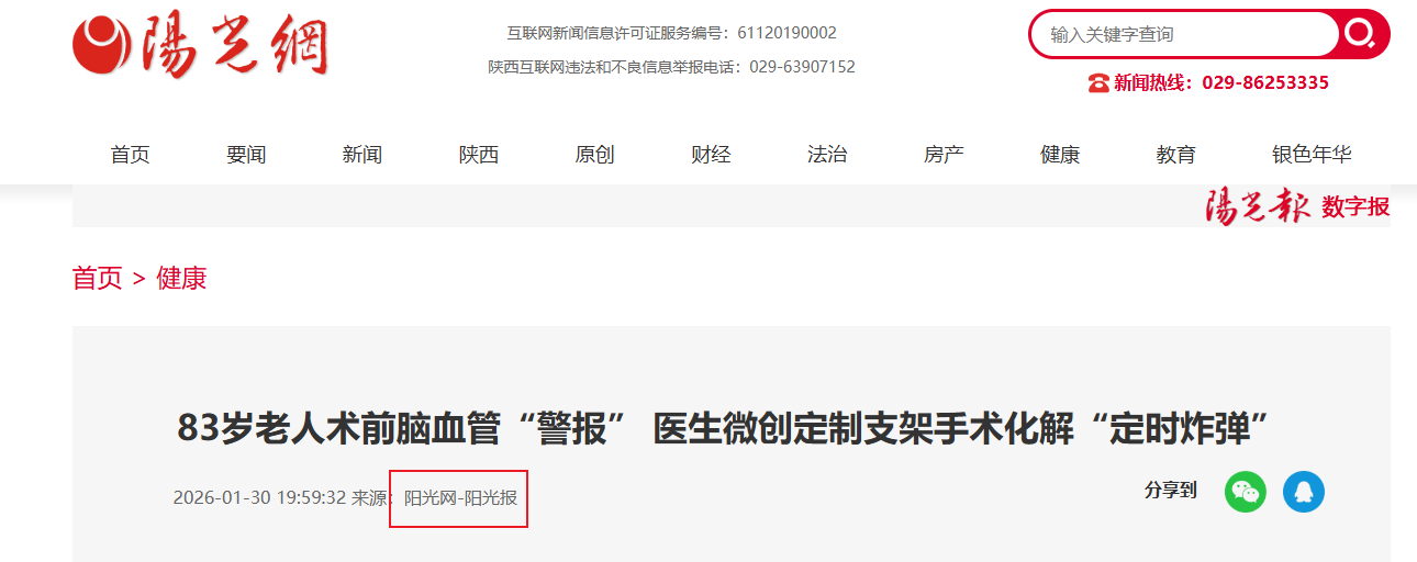 阳光讯(记者 郑亚雷 通讯员 杨龙)“太感谢你们了,我最怕以后半身不遂,你们帮我解决大问题了”。出院时,刘女士满脸笑容握着西安市红会医院神经内科介入团队医护的手,眼中满是感激。近日,西安市红会医院神经内科凭借精湛医术,成功为刘女士实施大脑中动脉支架植入术,精准…