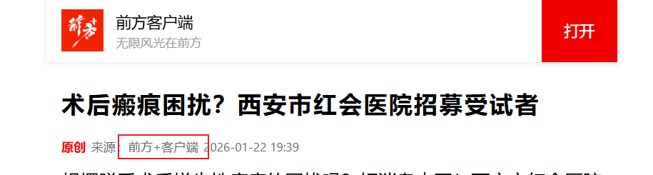 想摆脱手术后增生性瘢痕的困扰吗?好消息来了!西安市红会医院正在开展“超分子水杨酸联合脉冲染料激光治疗手术后增生性瘢痕”临床研究,现面向社会公开招募受试者,不仅能享受免费治疗和检查,还可领取200元交通补助。本次招募面向18-50周岁人群,需满足外科手术后一年内有长…