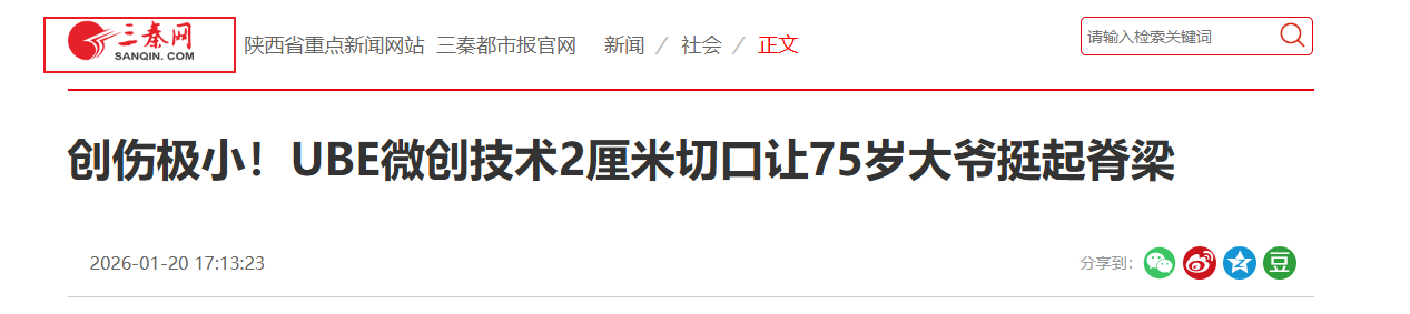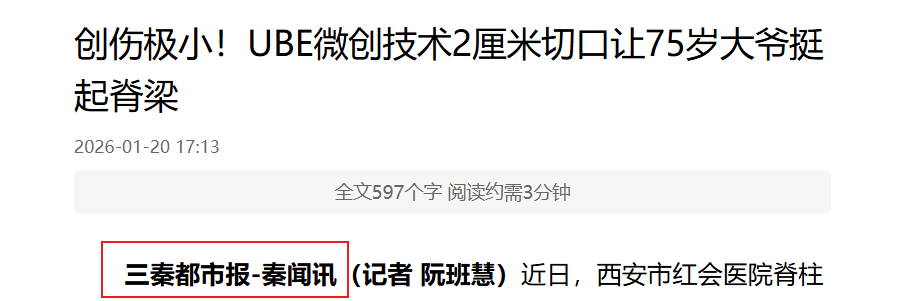 三秦都市报-秦闻讯(记者 阮班慧)近日,西安市红会医院脊柱病院成功为一名75岁的老年患者实施了UBE微创减压手术,仅通过一个不足2厘米的小切口,便解决了困扰他数月的严重腰腿痛问题,让老人重新挺直了脊梁。据了解,患者常大爷四个月前开始出现双下肢抽痛、麻木,一周前症状…