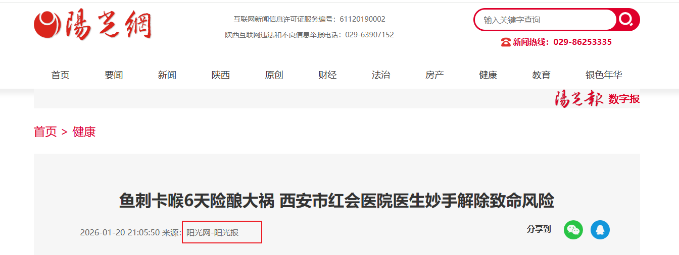 阳光讯(记者 郑亚雷 通讯员 陈萌)近日,张先生因误食鱼刺引发一系列危急症状,经西安市红会医院耳鼻咽喉头颈整形修复科紧急救治,最终化险为夷。这一案例也为大众敲响了警钟——小小的鱼刺,若处理不当可能引发致命风险。张先生6天前不慎吞食鱼刺,随后出现吞咽进食梗阻感,…