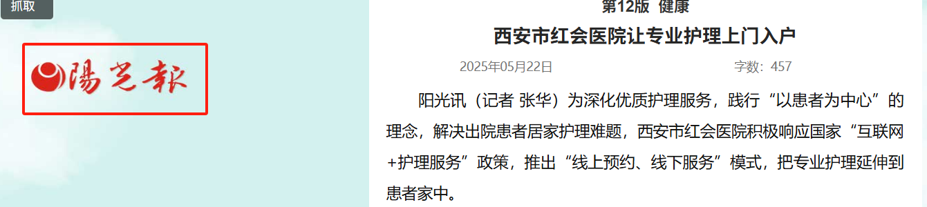 阳光讯(记者 张华)为深化优质护理服务,践行“以患者为中心”的理念,解决出院患者居家护理难题,西安市红会医院积极响应国家“互联网+护理服务”政策,推出“线上预约、线下服务”模式,把专业护理延伸到患者家中。 82岁的张先生因股骨骨折接受髋关节置换术后,急需专业…
