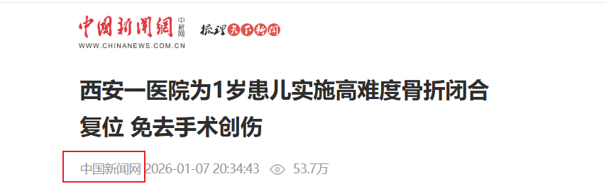 中新网西安1月7日电 (记者 党田野)记者7日从西安市红会医院获悉,近日,该院医护人员在不开刀的情况下,成功为一名1岁3个月大的患儿实施陈旧性左前臂尺桡骨骨折闭合复位,避免了手术对孩子的创伤,目前该患儿恢复情况良好。 据悉,该患儿不久前不慎摔倒,左前臂重重磕在地板…